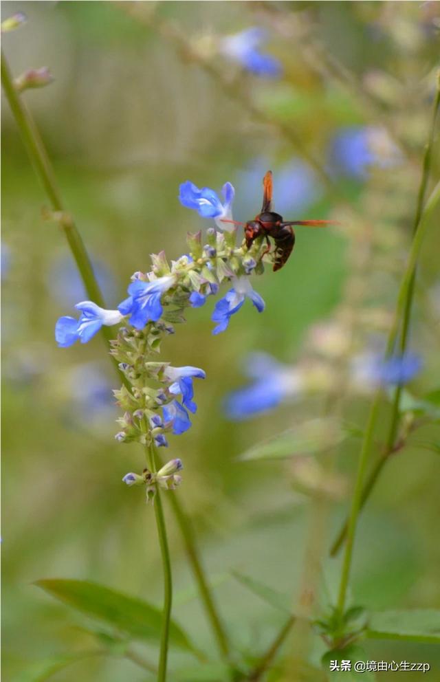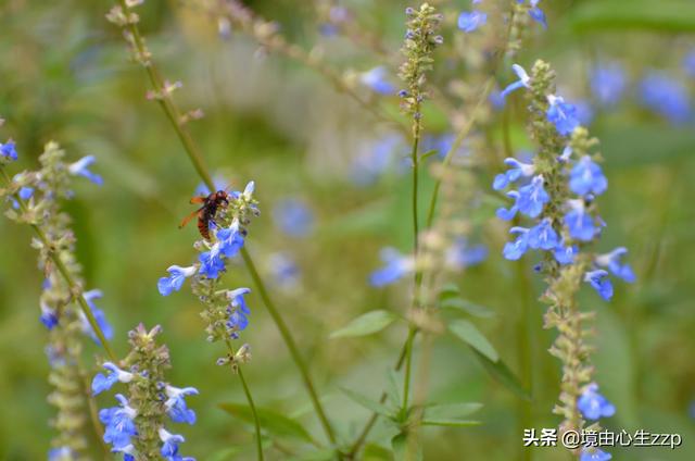 五、加入昆虫、鸟类让画面更富有生机 。在拍摄花卉时,不妨将一些小昆虫纳入到画面中,使照片看起来更具有一丝灵动的气息。这些可爱的小昆虫,不但不会影响花卉的拍摄效果,反而会让花卉画面更加新鲜动人。拍摄昆虫或鸟类出镜照片时一定要清楚,其目的是使画面更富有生机与活力,因此在构图、用光、用色时应该把握这一原则。例如,虽然不要刻意追求花朵在画面中占据最大的面积,也不要刻意在用光时强调花朵而消弱昆虫或鸟类的色彩。 在拍摄时由于昆虫或鸟类经常不停地飞动或爬行,想要获得合适的拍摄角度和位置,就需要摄影师耐心等候。
