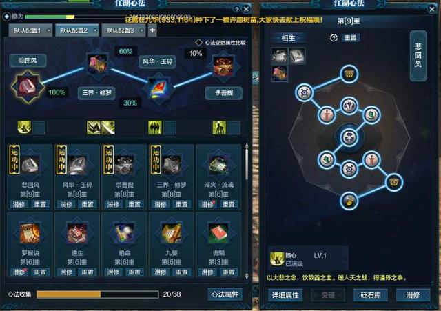 心法是功力来源很大一部分,但是紫色心法在第六重之后的升级每重需要两个金石头,有的可以用侠义值天魁币论剑币兑换,有的就得靠boss掉落拍卖行交易。金石头也可以放在经脉里,但是优先选择放入心法。
