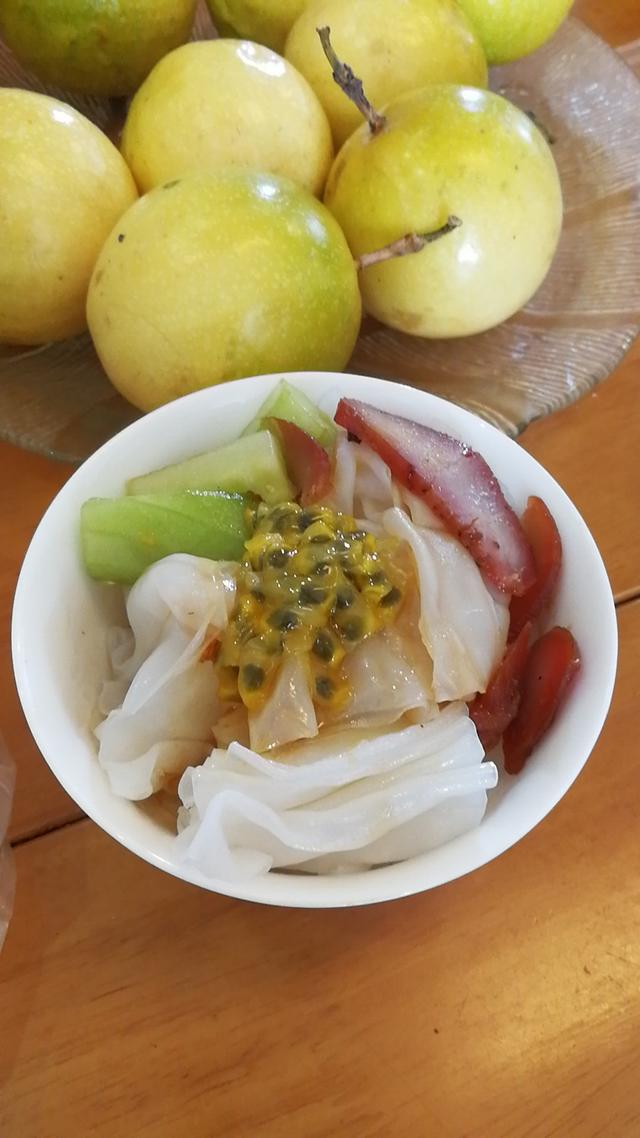 百香果最大的特点就是它和谁在一起,就变成谁,你可在苹果汁,橙汁……加一点试一下。用在菜上或蘸料中更会让你画龙点睛。