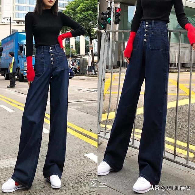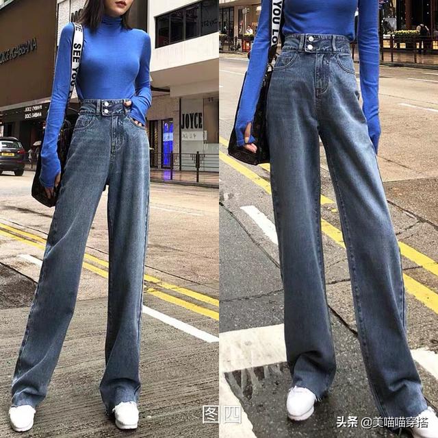 第二,大腿粗但腰胯比较细的女生,那就选择高腰阔腿裤,高腰直筒裤。因为这两款牛仔裤腿部设计宽松,能很好的起到遮肉的效果,而高腰的款式,又瞬间拉长了腿的长度,所以看上去腿变得又长又细了。