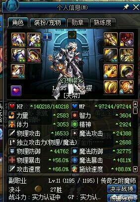 在打造的细节中还有很多,结婚属性,更换年宠,夏日的印章,传说勋章的强化还有徽章的力智。这位玩家也说自己并不是完美细节,至少在徽章上就少了25智力,从他的账号可以看出细节提升有多么重要。
