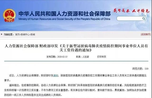 2月13日,人社部发布新消息,确定疫情期间事业单位员工工资的发放问题: