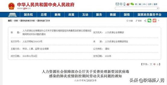 国务院办公厅在1月24日出台的《关于妥善处理新型冠状病毒感染的肺炎疫情防控期间劳动关系问题的通知》中明确指出: