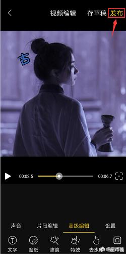 点击视频编辑页面右上角的“发布”功能,将制作完成的视频快速分享给好友。