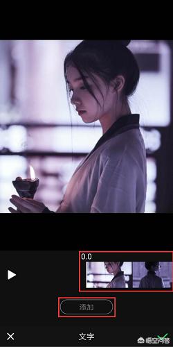 进入新的页面后,通过拖动进度条找到需要添加文字的画面,点击“添加”。