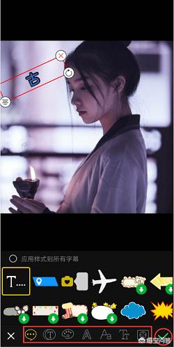 点击文本框输入文字,点击下方的项目栏可对字幕的样式、动画、颜色、描边、字体、大小、对齐等进行设置,设置完成后点击右下角的“√”。