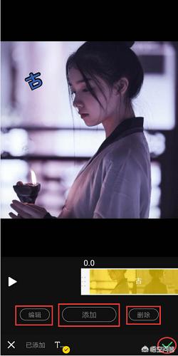 点击“编辑”对之前的操作进行更改,点击“添加”可继续为视频添加文字,点击“删除”删除之前操作。点击页面右下角的“√”返回视频编辑页面。