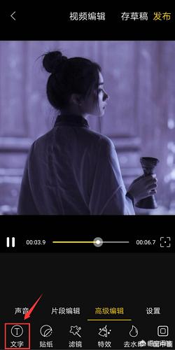 在视频编辑页面中,点击高级编辑模块中的“文字”功能,进入添加文字的下一步骤。