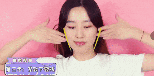 ③拇指和食指捏住下颚中间,同时向两边轻捋下颚轮廓线,反复几次;