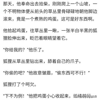 其次,动画里对于少年的正面形象,只是他善良救了一只狐狸,其他关于少年形象的事情几乎没有。如果能将原助理教训狐狸偷鸡蛋,帮助被流氓骚扰的小媳妇等事情添加进去。这样既丰满了少年这个人物的形象和性格,也让观众对少年一身正气、善良乐于助人的性格印象加深。