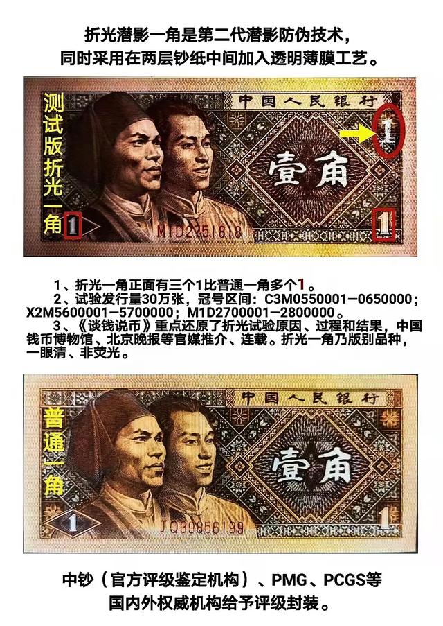 最终,折光潜影1角的防伪试制,未达到技术和实用的要求,很快被“定向回收”,导致折光潜影防伪技术“在2015版100元面值上不再采用”。