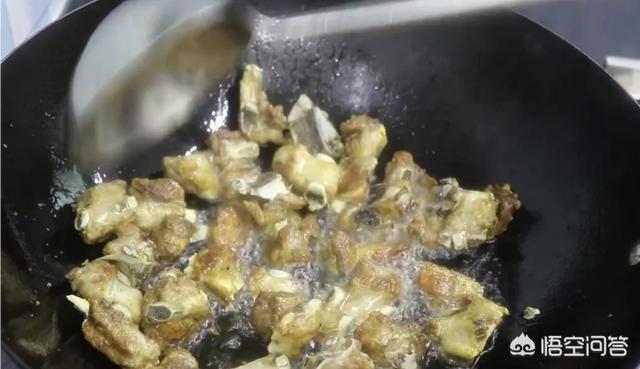锅热放半勺油,油温5成热时,加入排骨,再小火煸干。发现排骨呈金黄色时就可以乘出了。一般性排骨会炸一下,但是家常做时,炸好的油很难处理,所以就不炸了。
