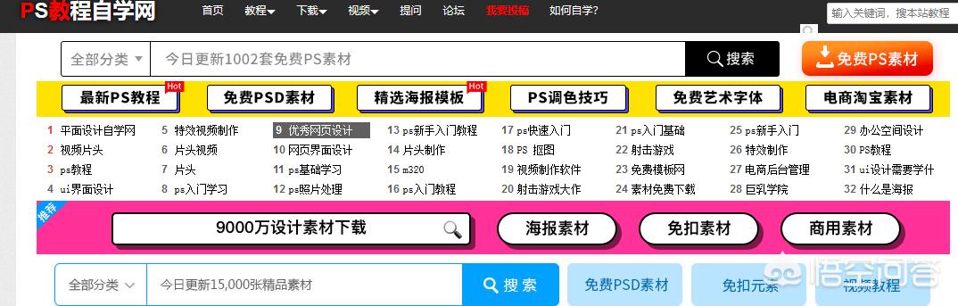 教程自学网,同样是一个有着详细教程跟丰富素材的网站。