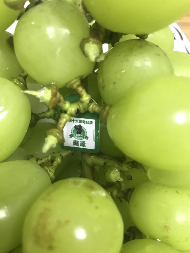 国内某个知名阳光玫瑰园的出品,仍然难以完全避免果锈生成。但是像第二张图那么严重的情况比例很少,三串里面只发现一粒这样的。