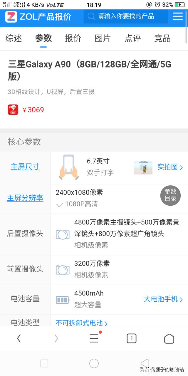 三星 A90 用的是 三星4800w 主摄 500W长焦