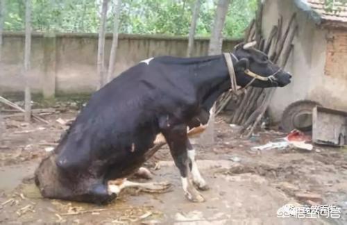 母牛生了小牛之后,因缺钙竞站立不起来了。