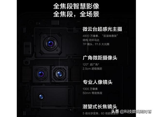 优化方面。手机防抖效果做的好,细节当然更加清楚,自身搭载的60倍数码变焦,他的整体镜头分工是4800万像素主镜头,800万像素广角镜头兼顾到了微距,800万的潜望式长焦镜头,以及1300万像素50mm焦距的人像镜头。
