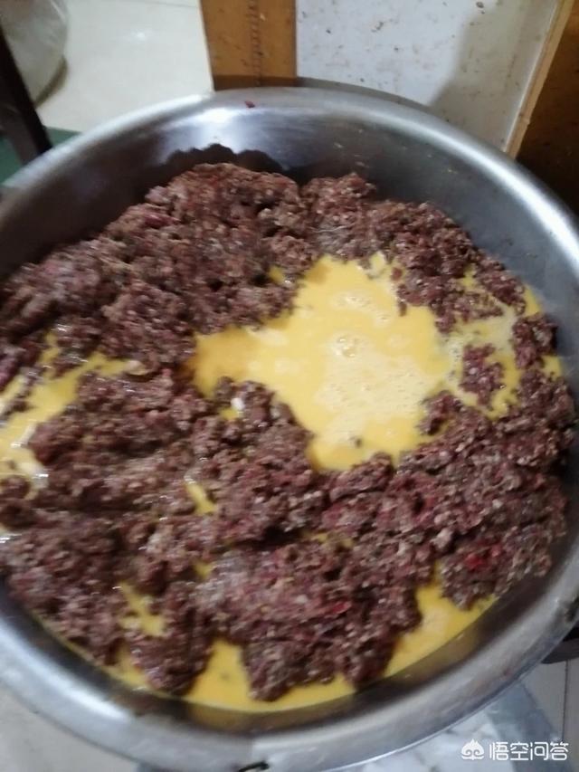 第一点,牛肉陷没有剁碎,导致下入油锅后炸开。
