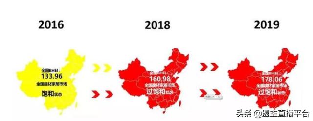 BHEI指数过高,竞争趋于白热化。家居卖场面积由2012年不到1亿平增长到2019年的2亿平。前段时间,中国建筑材料流通协会发布2019年《全国BHEI(中国城镇建材家居市场饱和度预警指数)数据报告》。报告显示,2019年,全国BHEI值达到178.06,位于红灯区,建材家居卖场已处于过饱和状态。