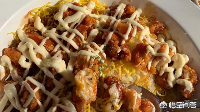 ⬇️炸鸡美乃滋鸡蛋丝盖饭:肉质嫩滑,带着汁水,外面酥酥脆脆,口水都要下来咯~