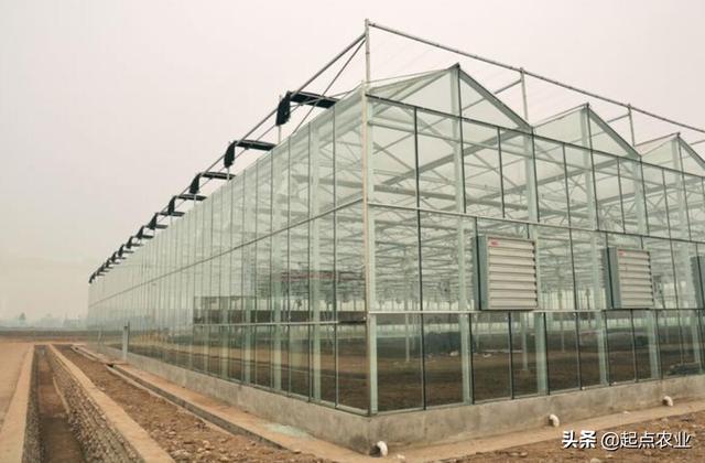 玻璃温室的尺寸有跨度、开间、立柱高度(詹高)、温室总长、温室总宽。玻璃温室的常规跨度有12m、10.8m、9.6m,开间尺寸有8m、4m,立柱高度从4m~8m,温室总长=跨度*跨数,温室总宽=开间*开间数。温室尺寸选择的参考为东北地区选择跨度和开间越小温室的抗雪能力越强,生产型温室的开间可以选择4m,观光型温室开间建议选择8m。