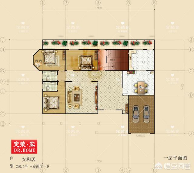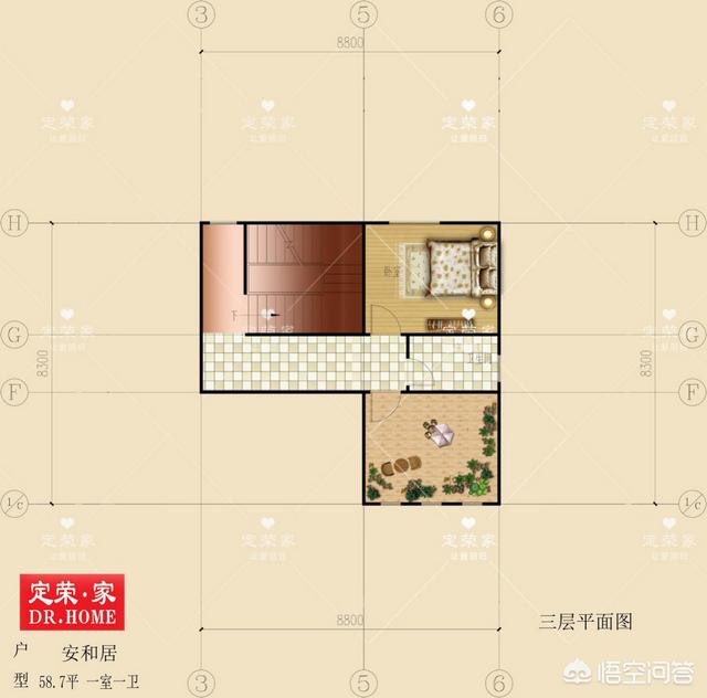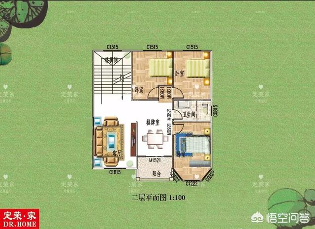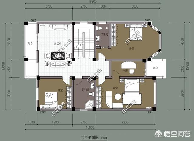 二层主要为家庭空间包括起居室、三个卧室、卫生间。