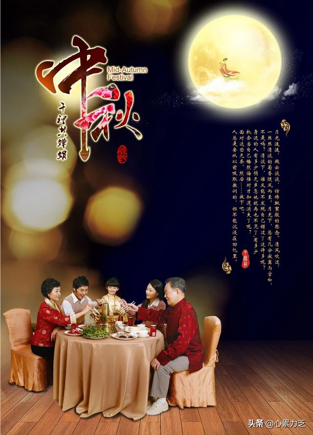 今天是中秋节,这是中国的传统节日,寓意着合家团圆,共庆丰收的意思。因为过去时代,中秋是秋天收获的季节,此时正好新收的稻米下来,农民以新米祭祀天地祖先,与家人庆贺丰收,一家人团聚。