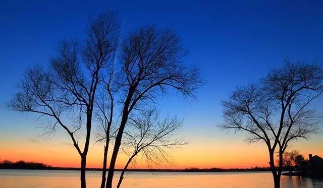 拍摄剪影,一定要选择轮廓明显、简洁,形态优美的景物来做前景。比如:没有树叶的树枝、造型别致的建筑等。