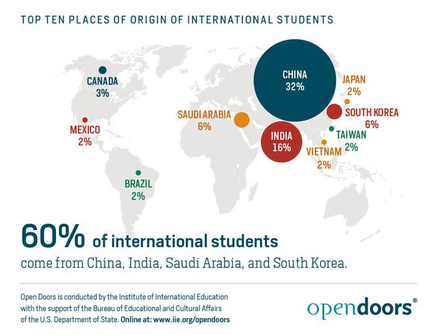 (图片来自IIE最新发布的门户开放报告 #OpenDoorsReport and #IEW2016)