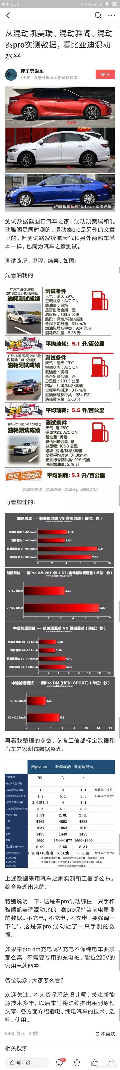 我给你提供的别人整理的秦pro,雅阁,凯美瑞之间的对比,也有小熊油耗的实际表现