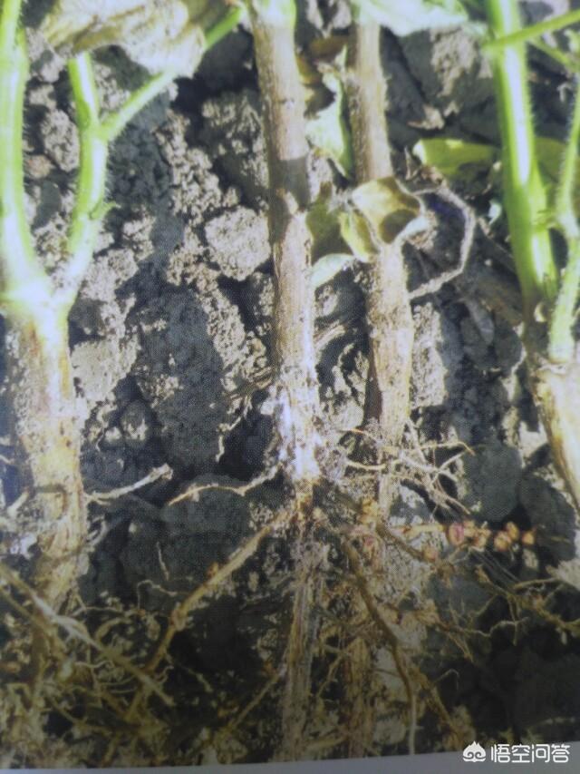 初期茎基部或胚根表皮出现淡红褐色不规则的小斑,后变红褐色凹陷坏死斑,绕根茎扩展致根皮枯死,受害株根系不发达,根瘤少、地上部矮小瘦弱,叶色淡绿,分枝、结荚明显减少。