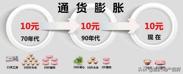 这就是人民币贬值表现的通货膨胀,同样的1万元钱,在10年前,5年前,现在,甚至未来,能够买到的东西是越来越少。