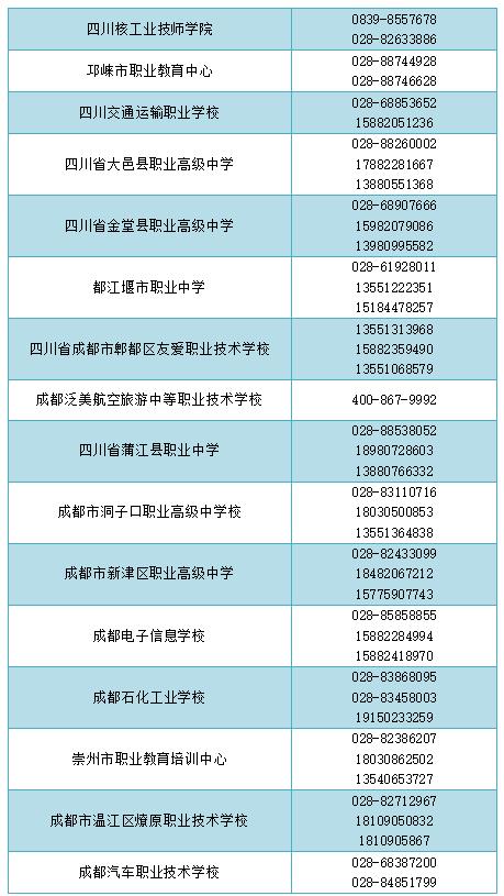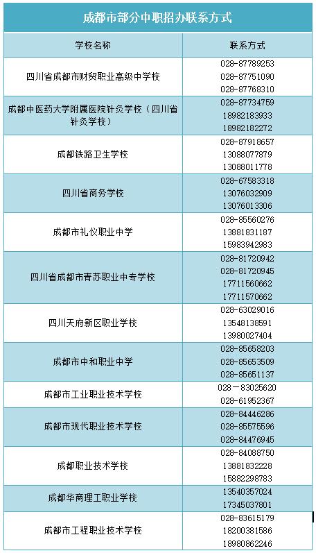 此外,成都市中和职业中学、成都铁路卫生学校、成都华商理工职业学校、四川省商务学校、成都职业技术学校等都是根据每年中考划线择优录取对口升学班学生。