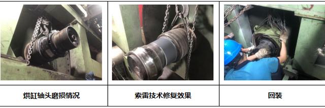 依赖于索雷碳纳米聚合物材料良好的机械性能,易加工、耐磨、耐冲击、耐腐蚀的理化特性,实现运转部件精准符合生产要求,使用寿命优于传统修复工艺,防腐性能优于传统方法。而且该技术不需要对设备进行大量的拆卸,仅对修复部位拆卸即可,可以在线快速解决烘缸轴头磨损问题,大幅缩短企业停机停产时间,降低企业损失。