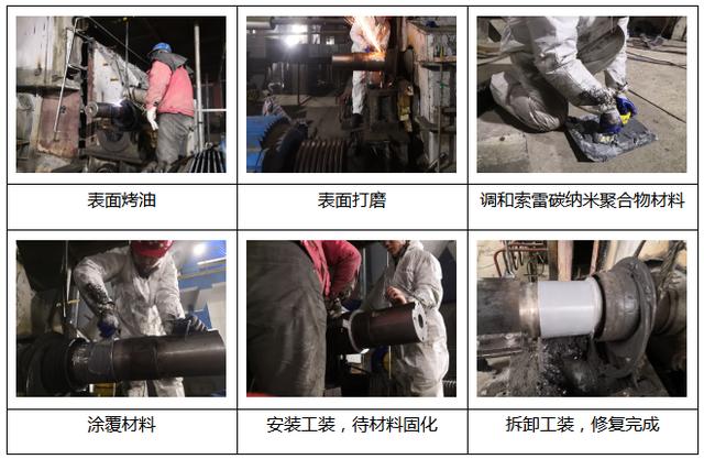 5.按照比例调和索雷碳纳米聚合物材料,均匀涂覆在修复表面;