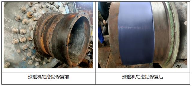 在前期与企业沟通后,我公司技术工程师结合设备运行参数和磨损程度分析,针对球磨机轴磨损情况,采用《索雷工装修复工艺》可以满足该设备的修复要求,即利用轴上未磨损位置为基准,利用碳纳米聚合物材料,恢复轴承位原始尺寸,实现快速在线修复,满足设备正常运行。