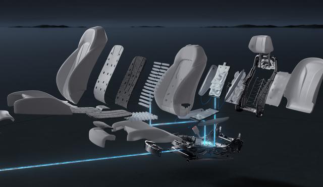 该座椅有三大特色技术:其一,主动贴合技术,该座椅内配备了可以智能充放气的气袋,对于不同乘客都能将座椅调整到合适的位置和环抱角度,通过与乘客的完美贴合,带来舒适体验;其二,弯道身体平衡技术,通过对于行驶信息的预判,进行侧翼气袋预充气,面对弯道与坎坷路面时,可以提供舒适支撑,缓解脊椎不适。其三,座椅硬度主动调节技术,在不同的驾驶模式下,可以模块化智能充放气,控制Micro矩阵气柱来改变座椅的软硬程度,带来全程的舒适体验。