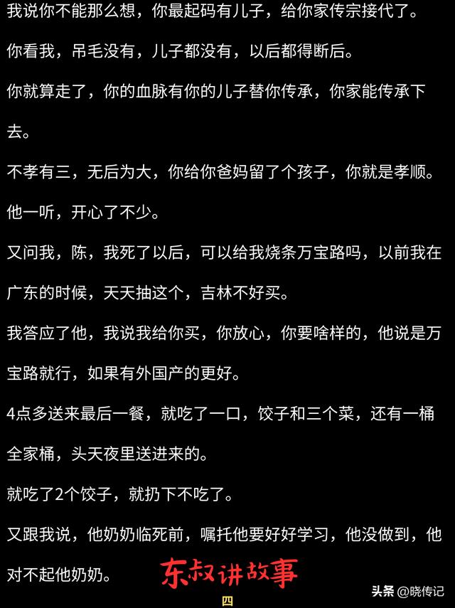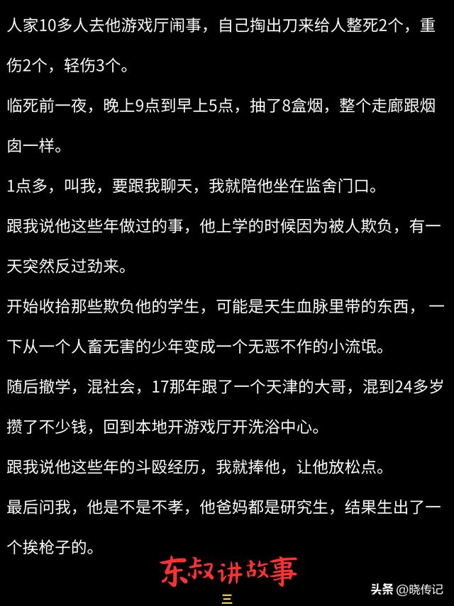 分享一些那不为人知的故事吧?细思极恐、唏嘘感叹、开怀大笑? spider 更新于 2023-07-24 05:30:03 全部 1017 分享一些那不为人知的故事吧?细思极恐、唏嘘感叹、开怀大笑? 回复 共1条回复 我来回复 晓传记 这个人很懒,什么都没有留下~ 评论 死刑犯的最后一夜是怎么度过的,想听听他们的故事吗?一个人畜无害的少年,变成一个无恶不作的小流氓~ 赞同 2023-06-20 21:04:07 0条评论 请 登录 或者 注册 后回复。