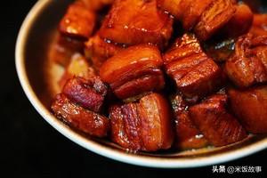 8.加入本酿造酱油和红烧酱油,红烧酱油自带糖分,省去了炒糖色的步骤,更方便8.操作,最终颜色也可以很漂亮。本酿造酱油没有那么咸,炖肉用特别的香。微炒一下煸出酱油的香味,并保证每块五花肉都均匀粘上颜色,然后倒入珐琅铸铁锅中,加入肉汤(或者清水)。