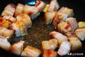 7.煎好的五花肉表面金黄,而且锅中会有很多油脂,把这些油脂倒出来