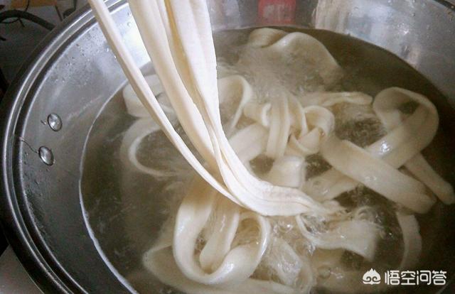 油泼面用的多是扯面,所谓的扯面,就是手工做成的宽面。
