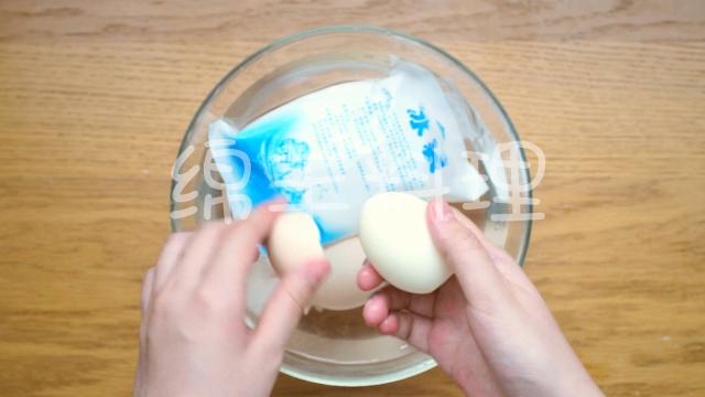 3.取出后立刻泡进冰水里,把蛋壳剥掉。