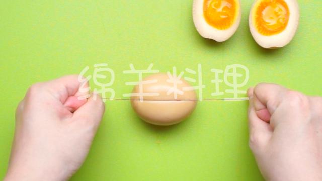 6.用线把鸡蛋割开,卤蛋就做好了。
