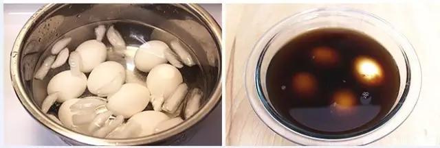 6.过30s-1min冰水浴后开始剥鸡蛋壳,并放入卤水中冷藏过夜即可食用