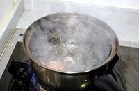 3.将水煮开至滚动(可以加少量醋,防止蛋壳裂开)