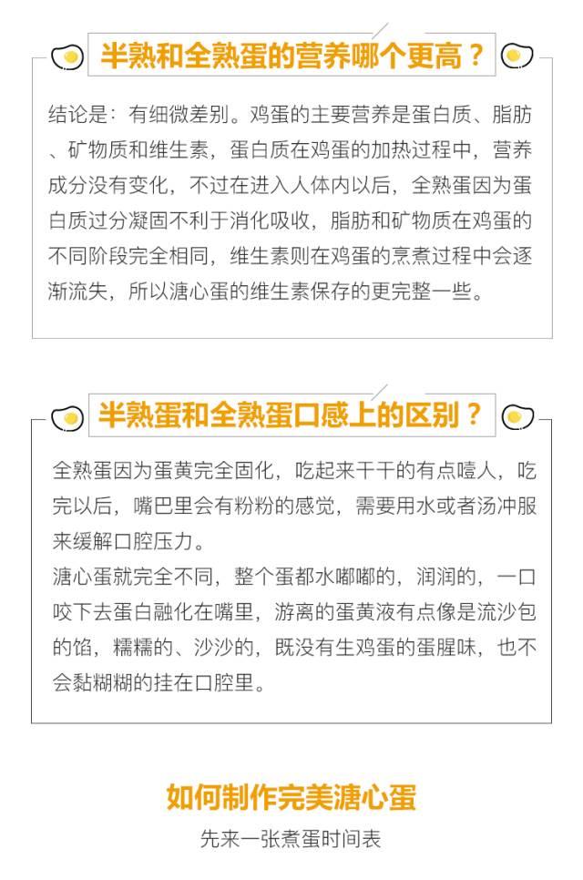 1.每家锅和电炉都不一样,所以一开始建议牺牲两颗蛋作为试验品:一个煮5min,另一个煮7min。煮好后过冰水浴,切开来看看蛋黄凝结情况来决定是第几分钟最理想。妞家的厨具煮5min,蛋白并没有完全凝固,蛋黄更是完全液体,7min煮出来正好。如果你家的锅5min煮出来正好就ok,如果太稀同时7min蛋黄又基本完全凝固,那么6min是最理想的