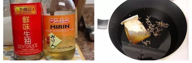 制作4个卤蛋的酱汁需准备:味淋36ml、日式酱油36ml、料理酒18ml、水12ml、糖16g、木鱼花一小撮。