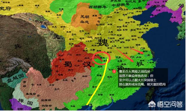 曹魏正在坐观成败,然后想左手渔翁之利。如果吴胜,则顺势取川蜀,蜀国胜利,也顺势取荆州。