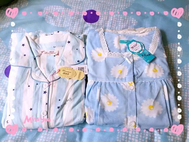 1、月子服,总共准备了三套,上面两套纯棉的 下面这套夹薄棉的 。