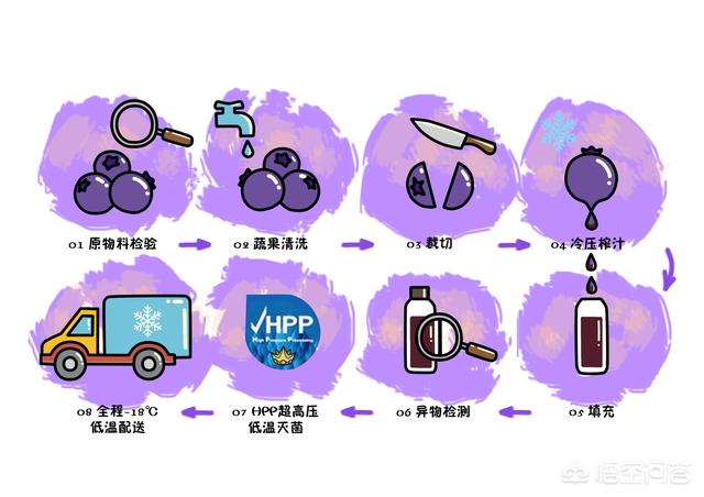 我在网上还查到一种运用HPP超高压冷杀菌技术的NFC果汁,这种技术是用水作为介质对软包装食品等物料施以400~600MPa的压力或用高级液压油施加以100~1000MPa的压力。从而杀死其中几乎所有的有害细菌,而且不会像高温杀菌那样造成营养成分破坏和风味变化。经过超高压处理过的果汁,几乎没有有害细菌,而且口味和营养也不会损失,没有任何添加物,所以想要喝健康好果汁,就选择经过HPP超高压冷杀菌处理过的果汁更好。
